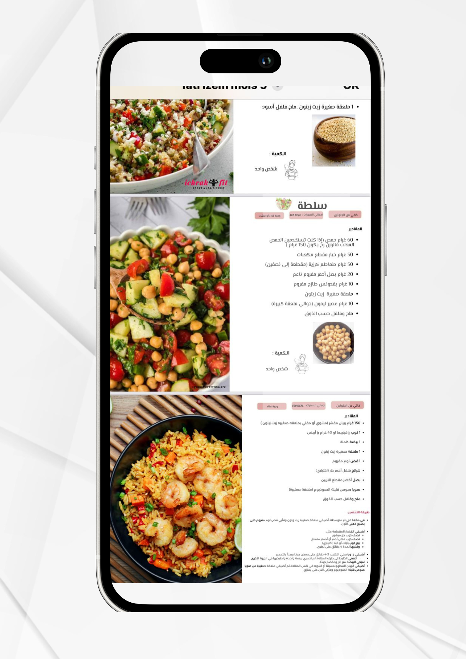 • • اقتراحات بدائل لكل وجبة حسب تفضيلاتك